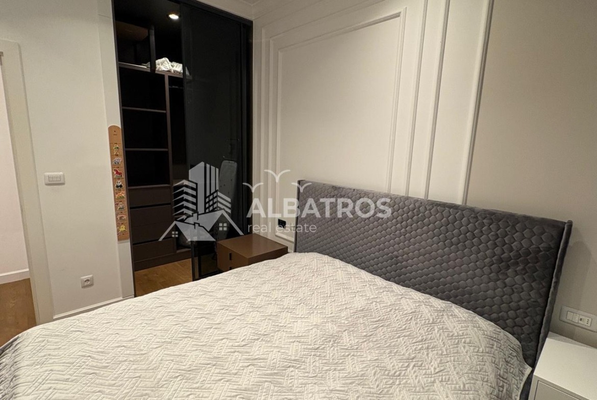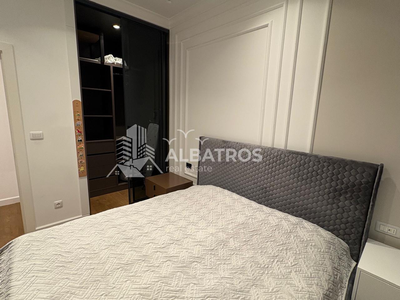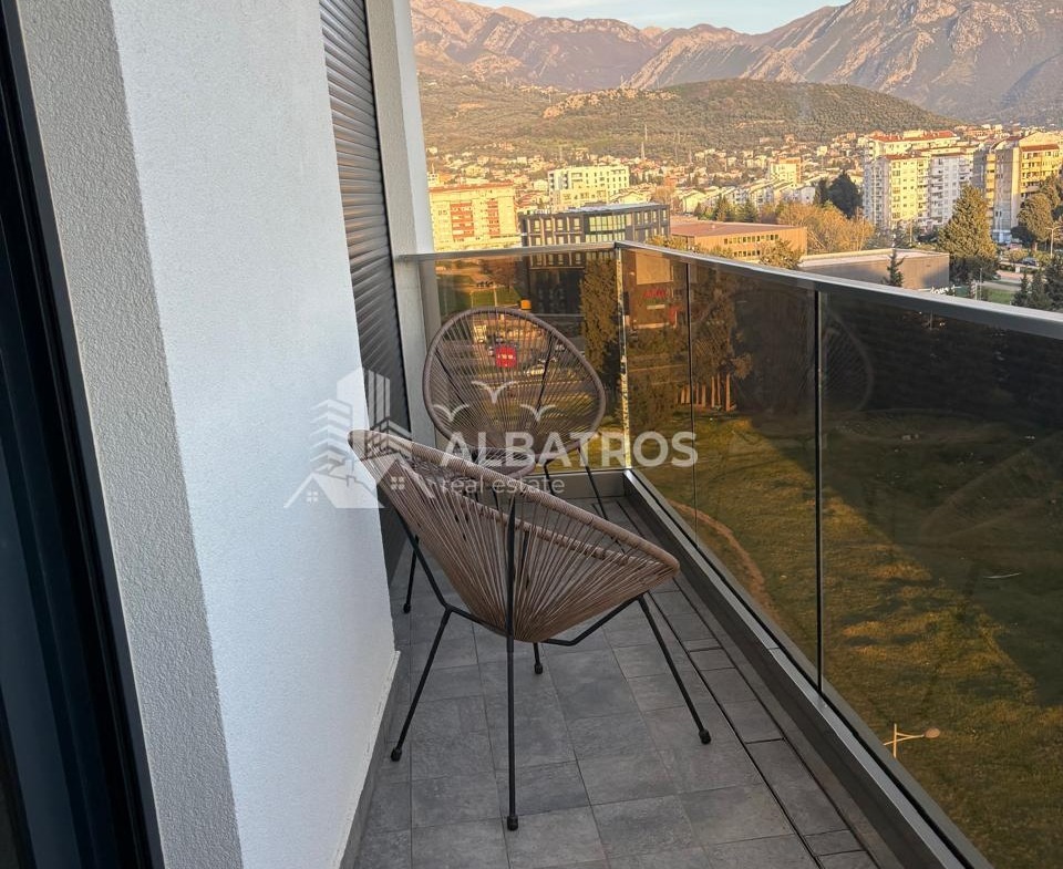 Izdajem dvosoban stan od 80m2 na sedmom spratu u Soho City zgradi koja ima tri lifta i sopstvenu recepciju. Stan se izdaje ful moderno namjesten kao na slikama , sa masinom za sudje i klimom u svakoj sobi.Stan je okrenut ka juznoj strani sa cije se terase pruza prelijep pogled na more. Stan se sastoji od dvije spavace sobe,dva kupatila, dugackog hodnika velikog dnevnog boravka sa kuhinjom i trpezarijom kao i sa priostranim balkonom. Uz stan takodje dolazi i privatno garazno parking mjesto u suterenu zgrade.