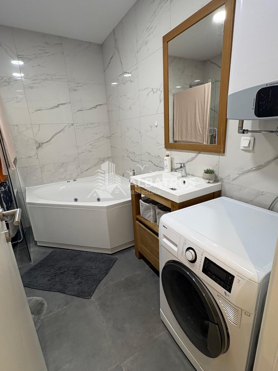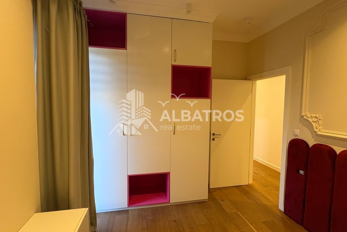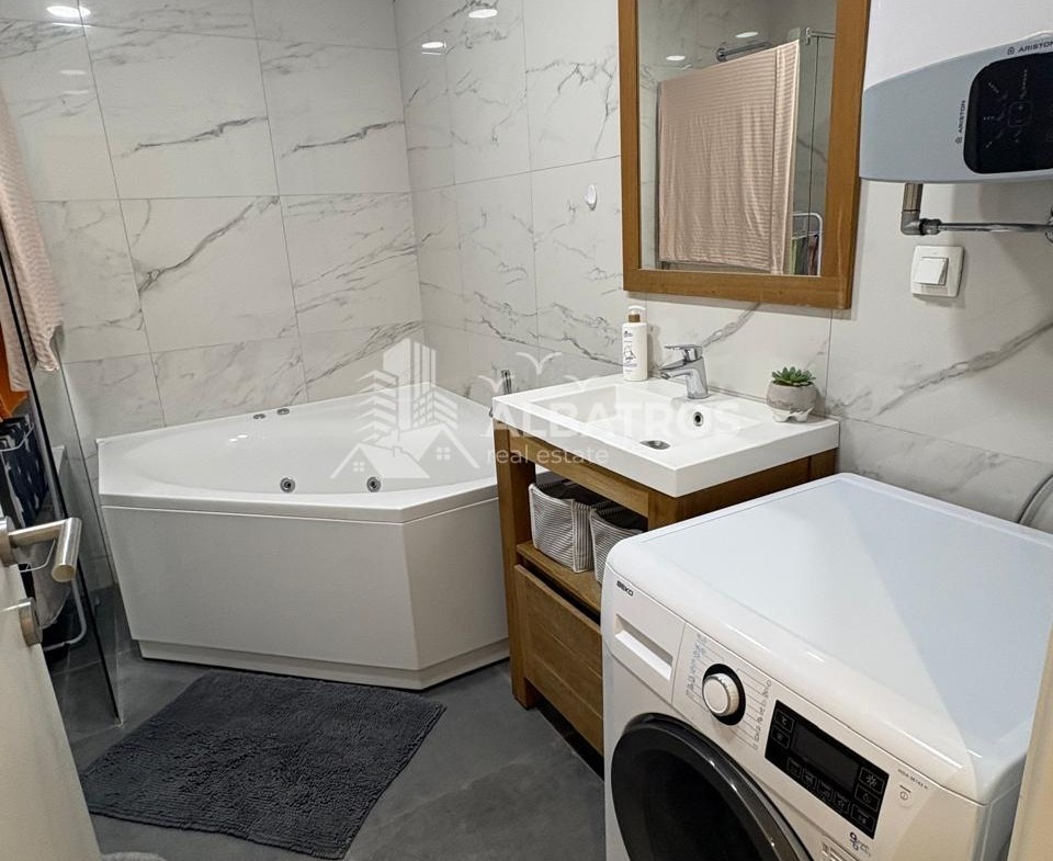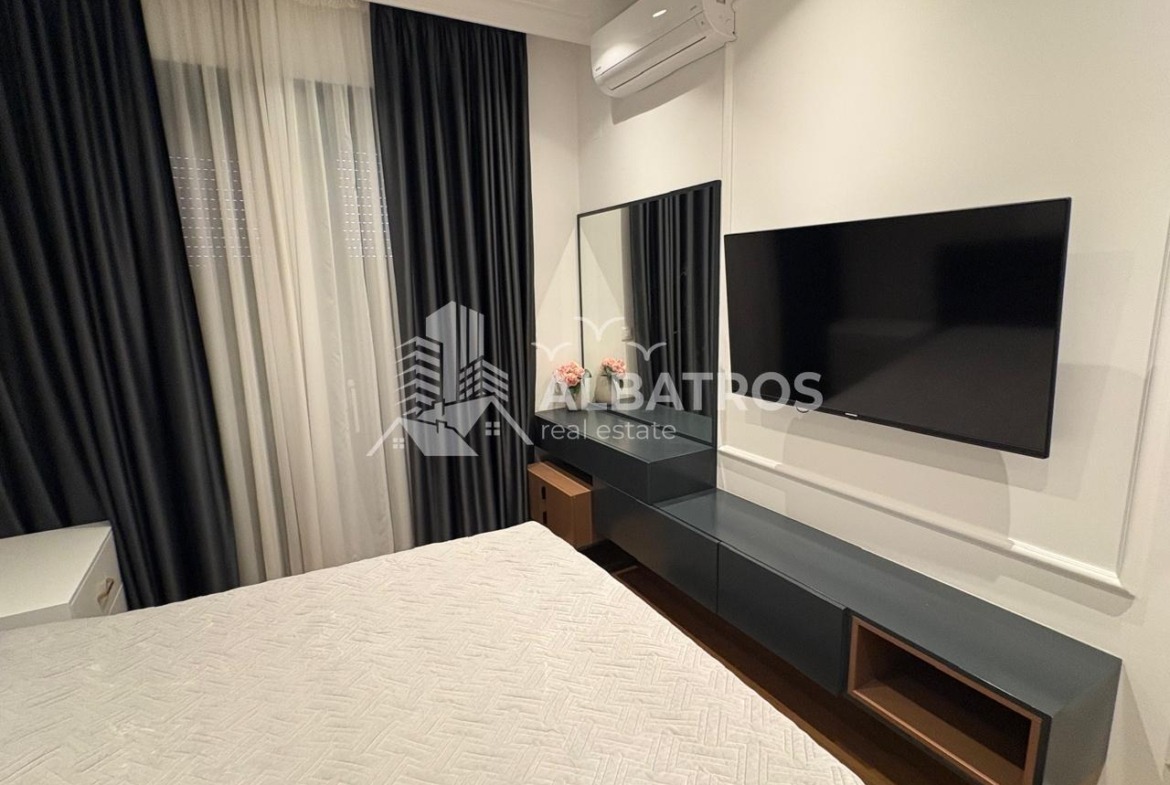 Izdajem dvosoban stan od 80m2 na sedmom spratu u Soho City zgradi koja ima tri lifta i sopstvenu recepciju. Stan se izdaje ful moderno namjesten kao na slikama , sa masinom za sudje i klimom u svakoj sobi.Stan je okrenut ka juznoj strani sa cije se terase pruza prelijep pogled na more. Stan se sastoji od dvije spavace sobe,dva kupatila, dugackog hodnika velikog dnevnog boravka sa kuhinjom i trpezarijom kao i sa priostranim balkonom. Uz stan takodje dolazi i privatno garazno parking mjesto u suterenu zgrade.